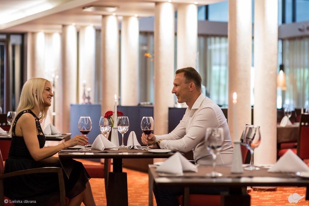 Vasaras sezona: 01.06.-31.08. Dāvanu karte vasaras sezonas laikā nav derīga: 21.-25.06., 17.-20.07, 15.-17.08. Nesezonas laikā dāvanu karte nav derīga: 09.-10.02., 15.-17.02., 08.-11.03., 29.03.-07-.04., 28.10.-03.11., 21.-26.12., 29.12.-01.01. „Golden SPA“ komplekss ir pieejams no 16 g.v. Viesnīca uzņem viesus ar mājdzīvniekiem, kuru svars nepārsniedz 15 kg, augums-40 cm (50 EUR piemaksa/1 nakts). Ierašanās no 15:00, izrakstīšanās līdz 12:00. Pēc rezervācijas veikšanas stājas spēkā viesnīcas rezervācijas noteikumi.