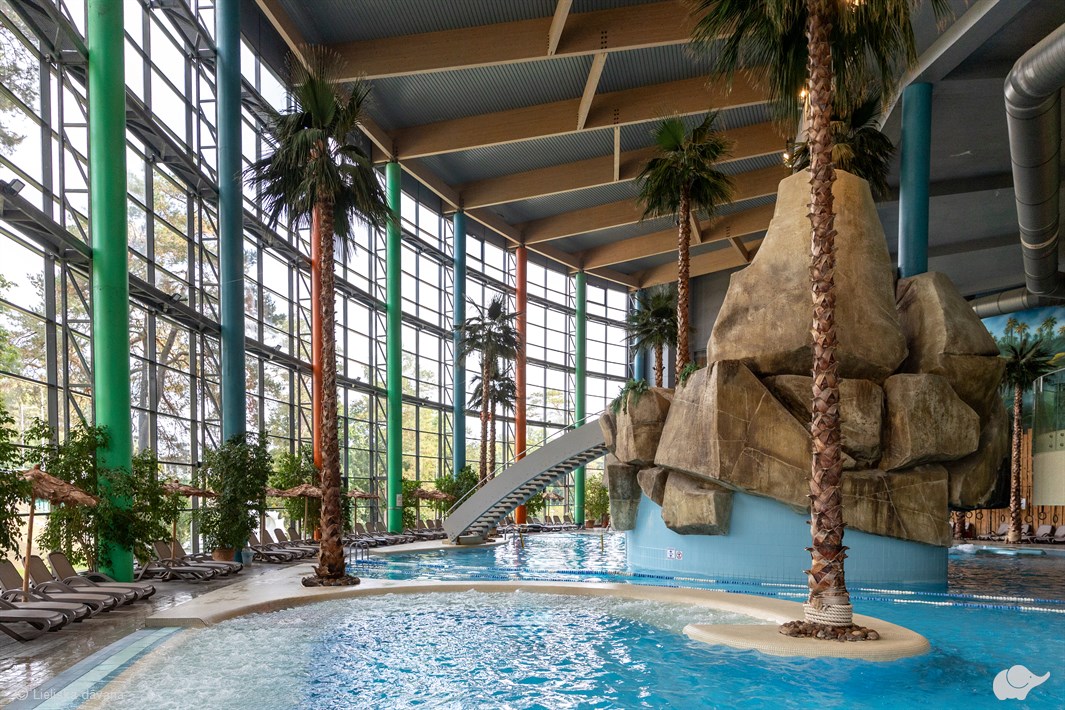 Sajūsminoši nobraucieni no ūdens slidkalniņiem, baseins ar jūras viļņiem, ūdenskrituma maigās skaņas, veldzēšanās palmu ēnā un relaksējoša ūdens straume!