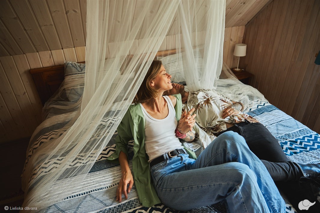 Jūsu ģimenei tiks sniegta iespēja nakšņot divstāvu kotedžā ar skatu uz bērzu birzi. Šeit būs iespēja sajust piparmētru un vīnogulāju smaržu, plašā terasē baudīt rīta kafiju.
