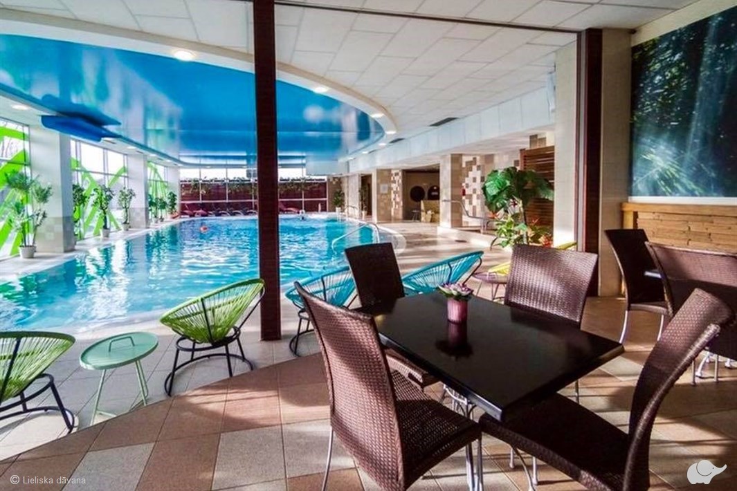 Labdien, Ūdens relaksācijas centrā ir pieejams trīs līmeņu peldbaseins. Peldbaseins ar ūdens attīrīšanas sistēmu BEZ HLORA. Baseins ir aprīkots ar kaskādi, hidromasāžas guļamkrēsliem, zemūdens straumi. Pieejams ir arī bērnu baseins.