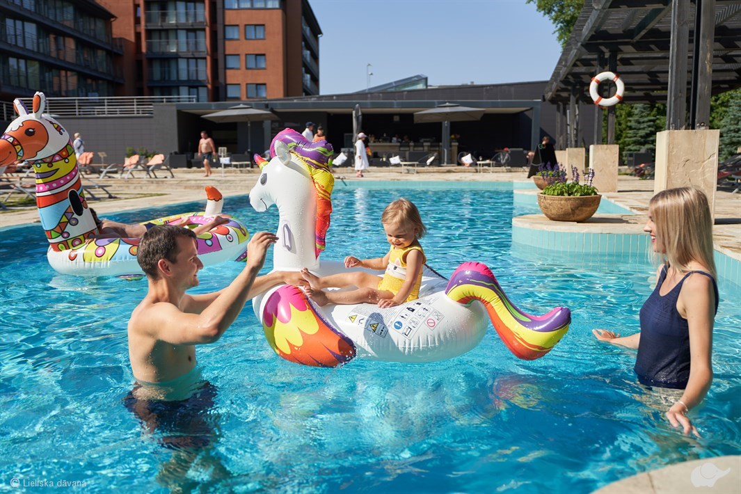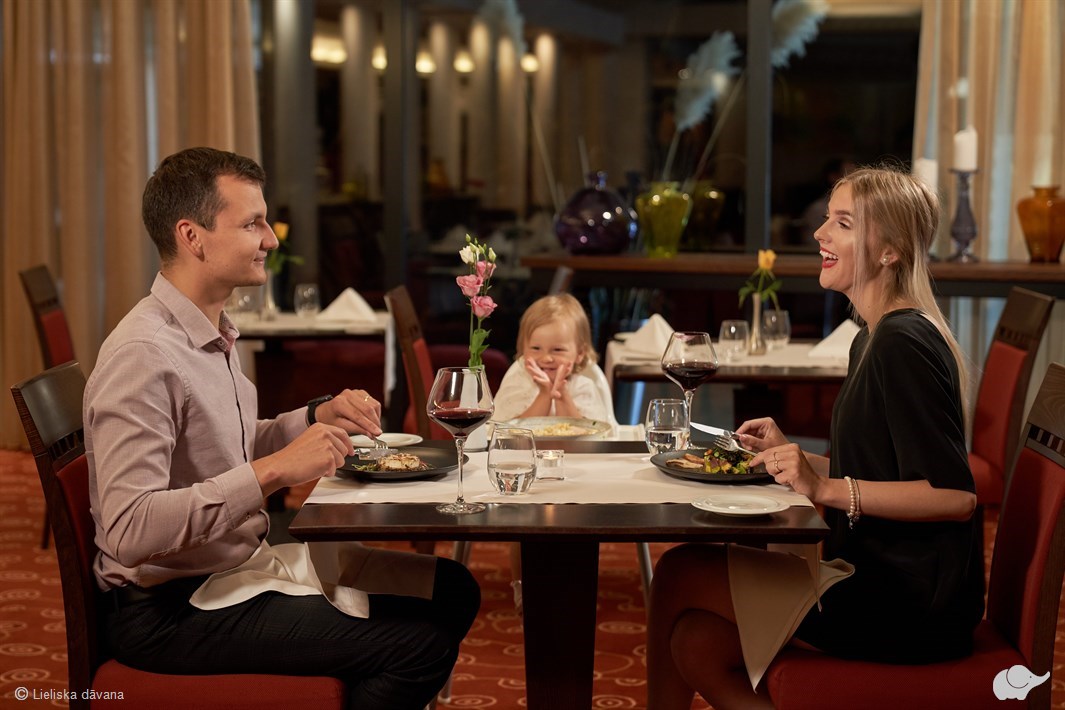 Vasaras sezona: 01.06.-31.08. Dāvanu karte vasaras sezonas laikā nav derīga: 21.-25.06., 17.-20.07, 15.-17.08. Nesezonas laikā dāvanu karte nav derīga: 09.-10.02., 15.-17.02., 08.-11.03., 29.03.-07-.04., 28.10.-03.11., 21.-26.12., 29.12.-01.01. Piedāvājums paredzēts 2 pieaugušajiem un bērnam/iem līdz 14 g.v. „Golden SPA“ komplekss ir pieejams no 16 g.v. Viesnīca uzņem viesus ar mājdzīvniekiem, kuru svars nepārsniedz 15 kg, augums-40 cm (50 EUR piemaksa/1 nakts). Ierašanās no 15:00, izrakstīšanās līdz 12:00. Pēc rezervācijas veikšanas stājas spēkā viesnīcas rezervācijas noteikumi.