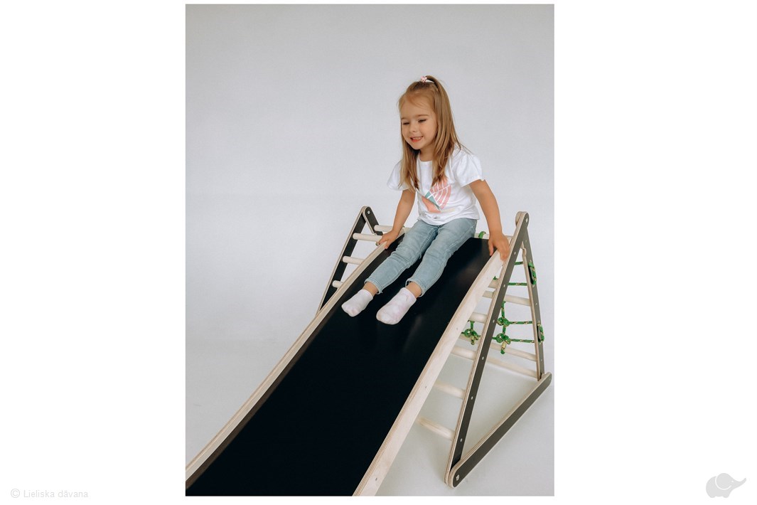 Salokāmo trīsstūri ar slidkalniņu ieteicams izmantot mājās. Preces izsūta ar kurjeru (iekļauts cenā).