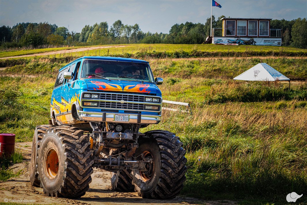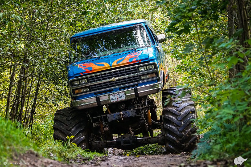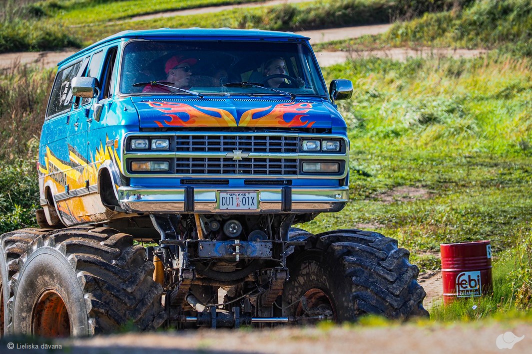 Kas ir šis monstrīgais visurgājējs? Uz 1994. gada minivena Chevrolet Chevy Van G30 Beauville bāzes būvēts transports, kura virsbūves garums sasniedz pat 5,3 m, un tajā var braukt līdz pat 8 personām. Tomēr vislielāko iespaidu atstāj tā milzīgie riteņi, kas ir cilvēka augumā!