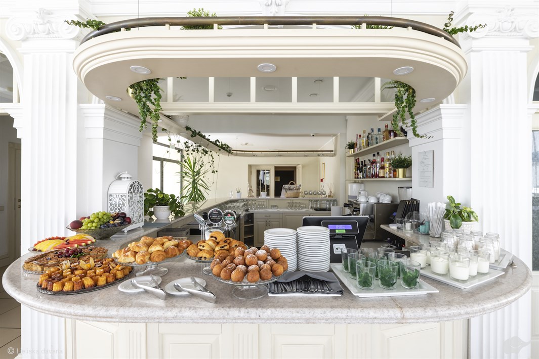 Bufetes tipa brokastis katru rītu tiek pasniegtas elegantajā restorānā "Salt Blues". Citos laikos tas piedāvā starptautisko un reģionālo tradicionālo ēdienu ēdienkarti.
