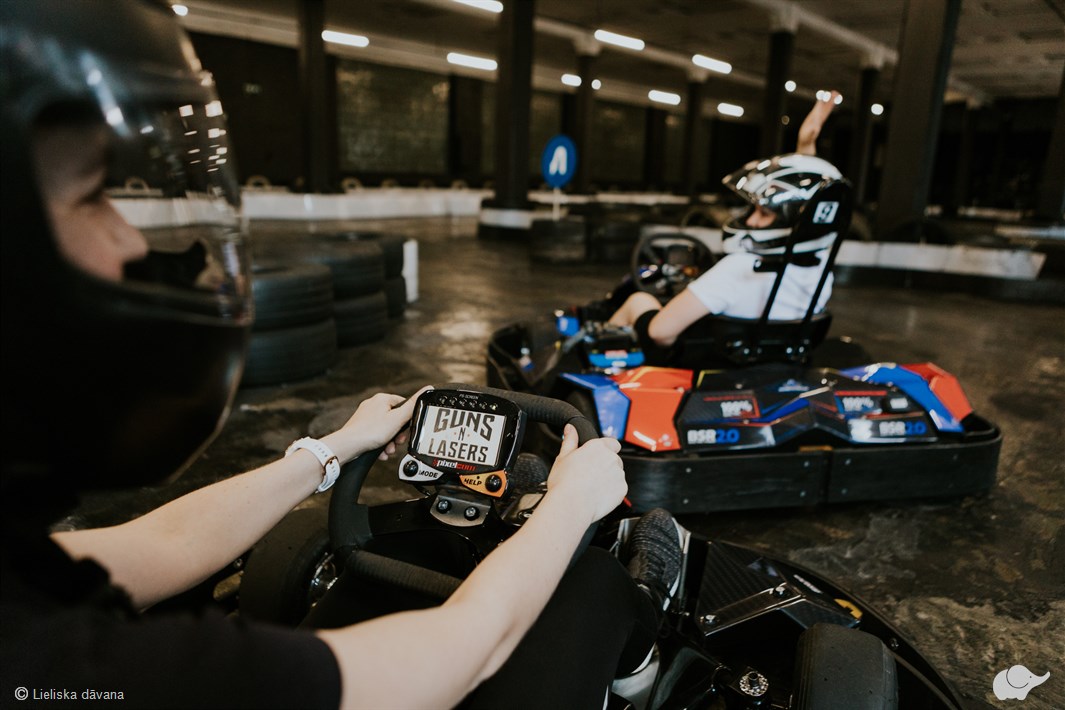 Piedzīvojums ar elektrokartingiem – ātrums, adrenalīns, azarts un vienkārši WOW sajūtas pieaugušajiem un bērniem! Plašā un interesantā “GUNSnLASERS” iekštelpu trase Juglā ļaus sacensties neatkarīgi no laikapstākļiem, kurā var izbaudīt jaudīgos un drošos Blue Shock Race elektrokartingus – tiem ir pasaulē atzīta kvalitāte, garantējot ātrumu un stabilitāti. Metieties azartiskā ģimenes sacensībā par labāko apļa laiku un varbūt pat nokļūsiet trases dienas, mēneša vai gada TOP rezultātos! Katrs dalībnieks saņems personalizētu diplomu ar saviem rezultātiem, kā arī instruktora padomus tehnikas pilnveidošanai. Garantēts enerģijas lādiņš, pozitīvas emocijas un piedzīvojums, ko ģimene vēl ilgi atcerēsies!