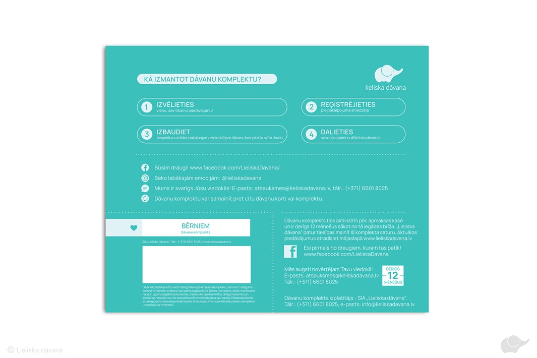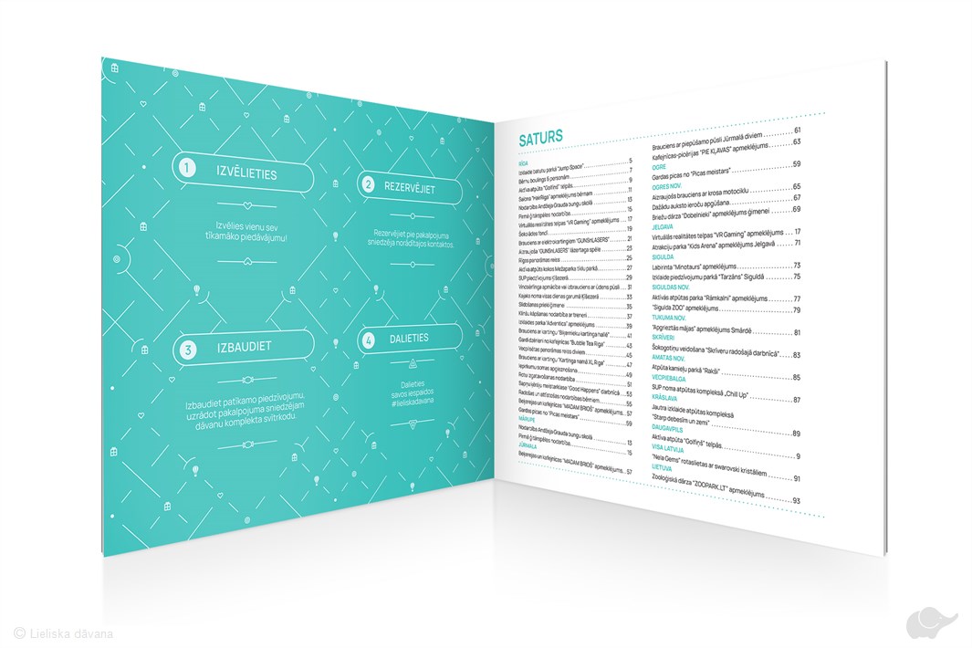 “Lieliska dāvana” ir lielākais piedzīvojumu dāvanu veikals Latvijā. Vairāk nekā 2500 iespēju izvēlēties – piedāvājumā lidojumi, aktīvā atpūta, ātrums un adrenalīns, restorāni, masāžas, SPA brīvdienas, meistarklases kā arī citi oriģināli un emocijām bagāti piedzīvojumi Latvijā, Lietuvā un Igaunijā. Dāvanu kartes un komplektus var iegādāties klātienes veikalos vai tiešsaistē 1 minūtes laikā. Gandrīz visas dāvanas ir derīgas 12 mēnešus, tās var arī pagarināt un bez maksas apmainīt.