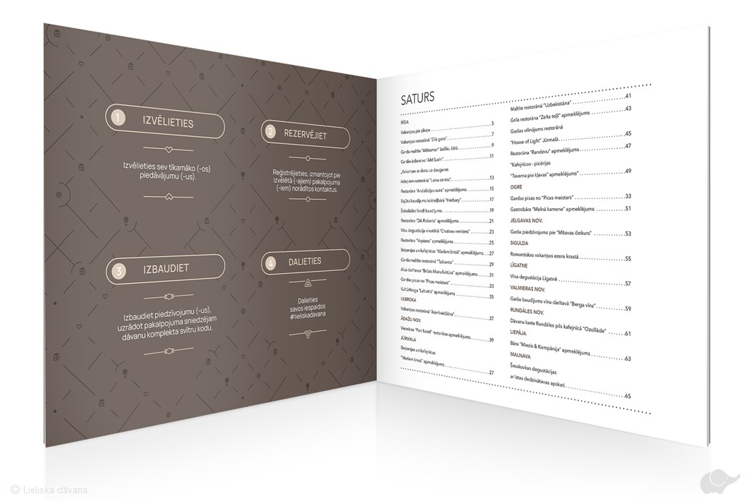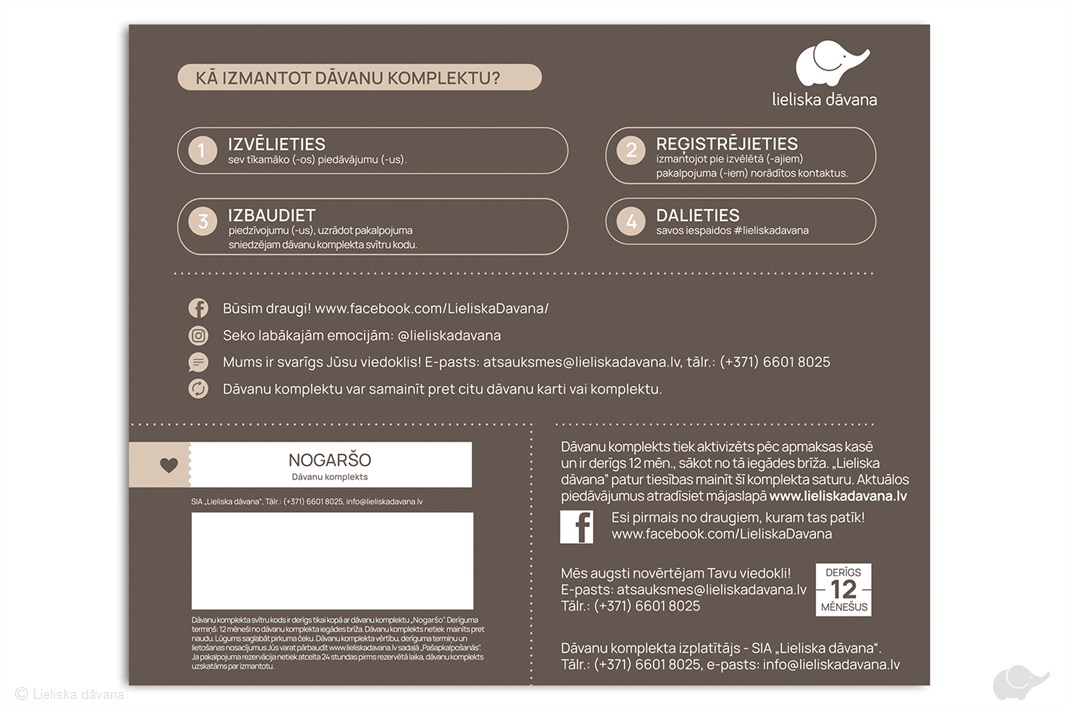 Izvēlieties vienu sev vispiemērotāko piedāvājumu, reģistrējieties pie pakalpojuma sniedzēja un izbaudiet! Dāvanu komplekts ir vairākkārt izmantojams.
