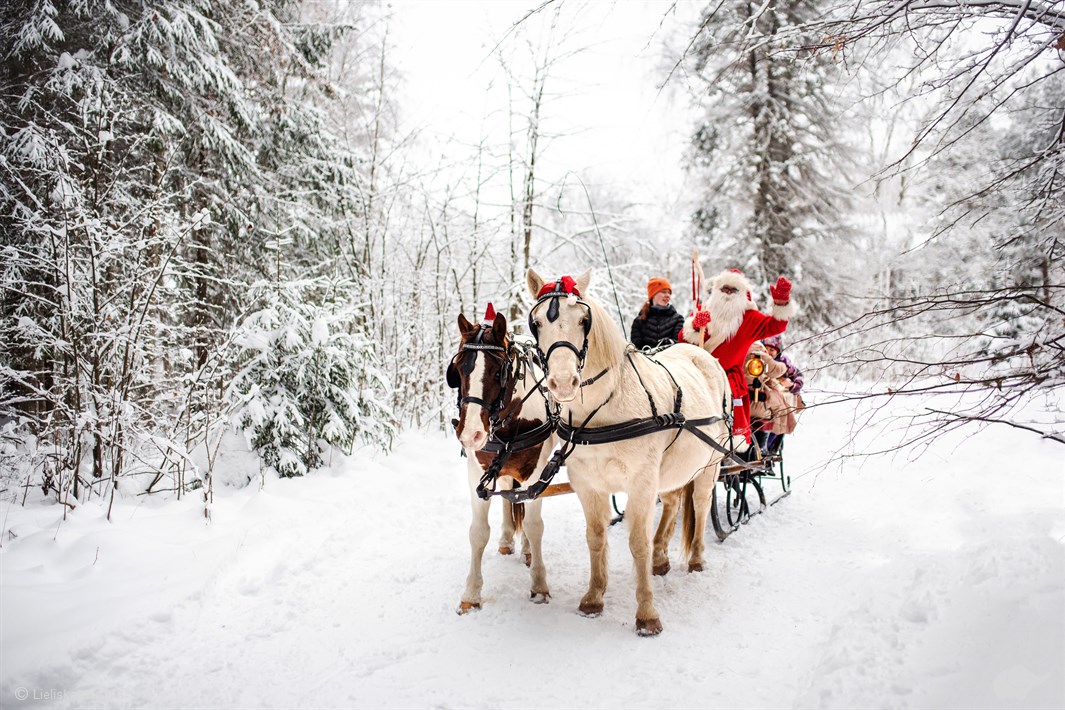 Ziemas mēnešos ļaujieties pasakainam braucienam kamanās vai ratos pa piesniegušiem meža ceļiem, sajūtot senatnīgu šarmu un mieru, ko sniedz zirgu pakavu šķindoņa sniegā.