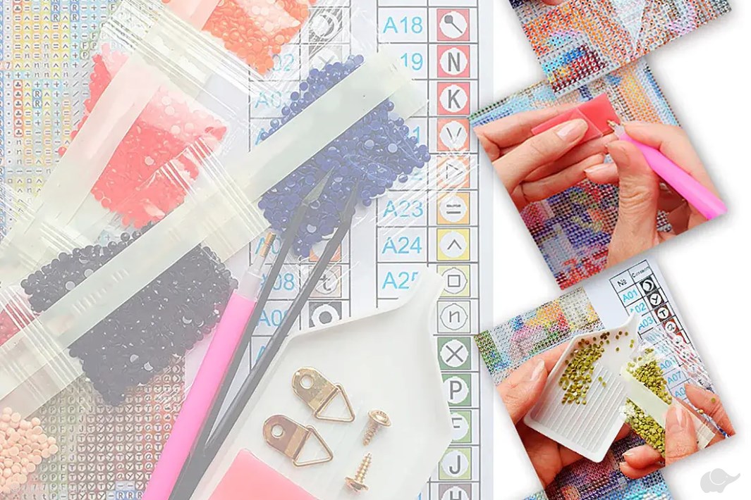 Komplektā būs viss nepieciešamais radošajai atpūtai – audekls, dimantiņi, piederumi un instrukcija.