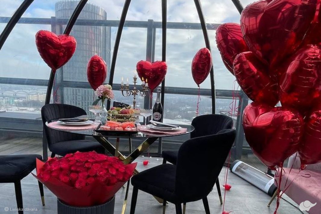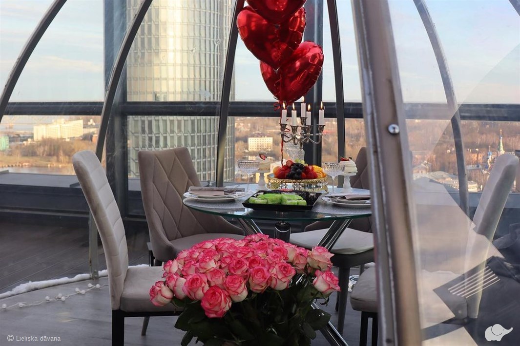 Gardas brokastis un fantastisks skats uz Rīgu! Baudiet branču “Skyhouse Igloo” kupolveida namiņā kopā ar labākajiem draugiem, sirdsdraudzenēm vai ģimeni! Iglu namiņš elitārā Filozofu Rezidences nama 23. stāva terasē ir apsildāms, tāpēc Jūs varat ļauties brīnišķīgiem notikumiem jebkurā gadalaikā!