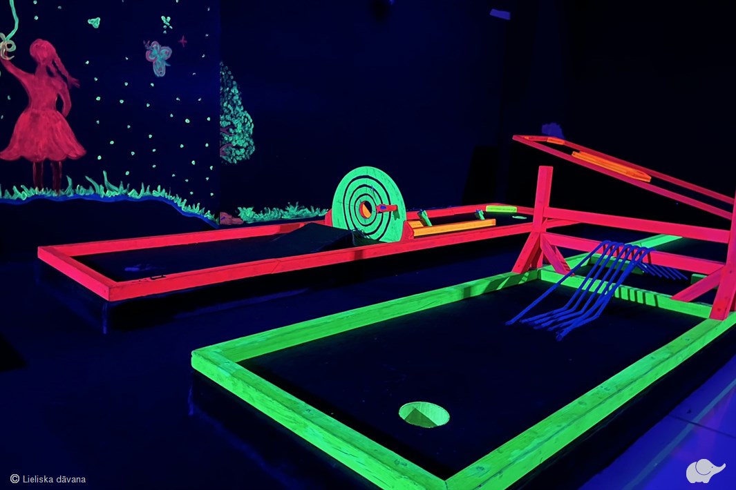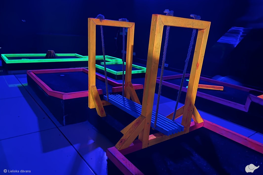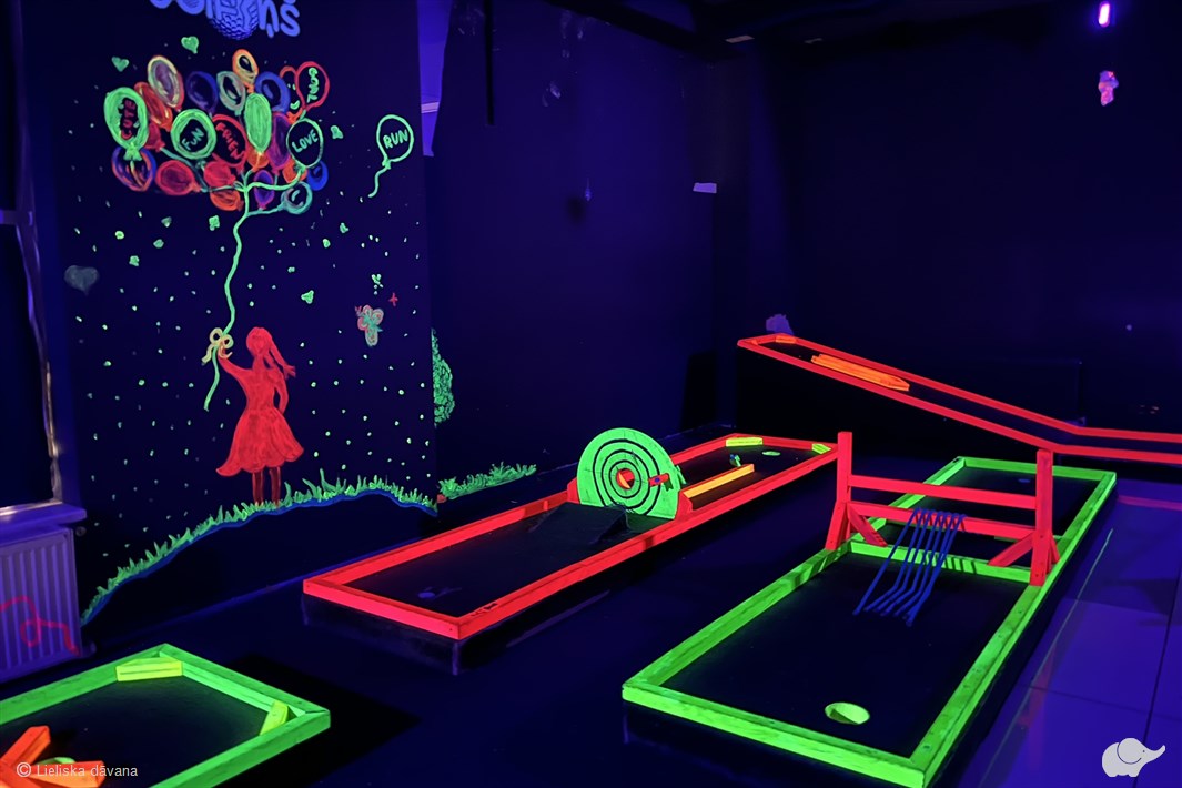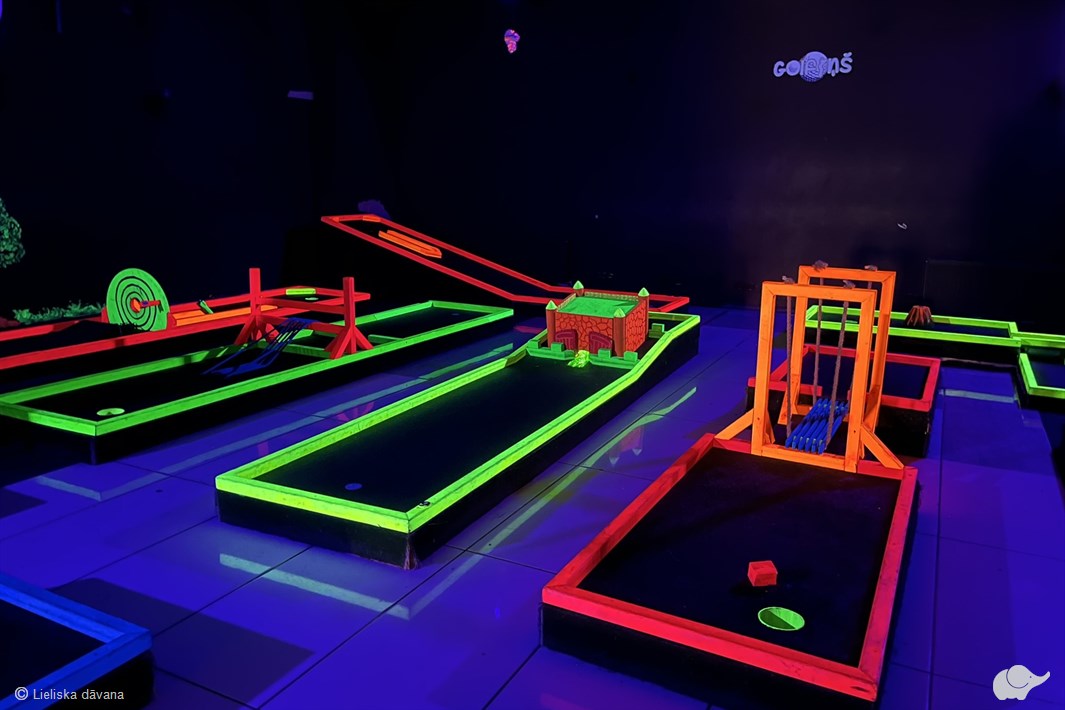 Spēle ir interesanta gan pieredzējušiem spēlētājiem, gan iesācējiem, tāpēc labs garastāvoklis garantēts! “Golfiņš” telpās katrs laukums piedāvā jaunu izaicinājumu, kas - burtiski - piedāvā būt kopā pavisam citādā gaismā! Divos stāvos bez laika ierobežojuma jūs izaicinās 18 bedrītes, līdz trāpīsiet bumbiņu pēdējā bedrītē.