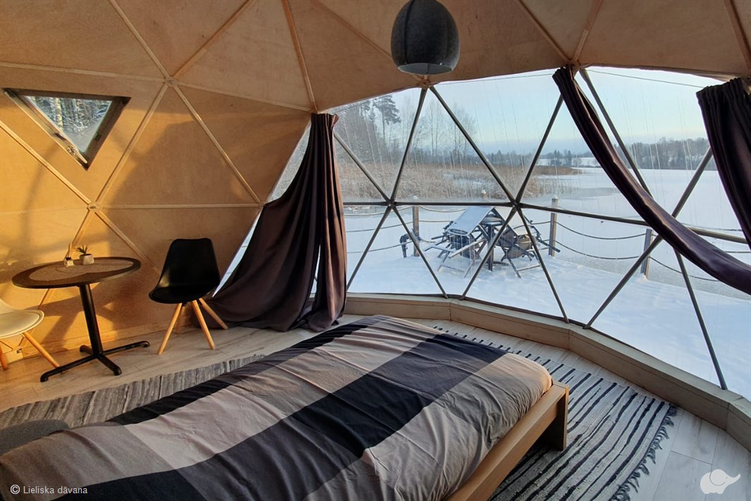 Varat iztēloties zvaigžņotu nakti glempingā, kad caur kupola caurspīdīgo sienu debesis šķiet rokas stiepiena attālumā, bet mēnessgaisma atspīd uz ūdens. Kad pienāk rīts – pirmie saules stari liek ezeram mosties, bet Jūs to vērojat no ērtas gultas ar siltu rīta kafiju rokās, ko pagatavojis otrs.