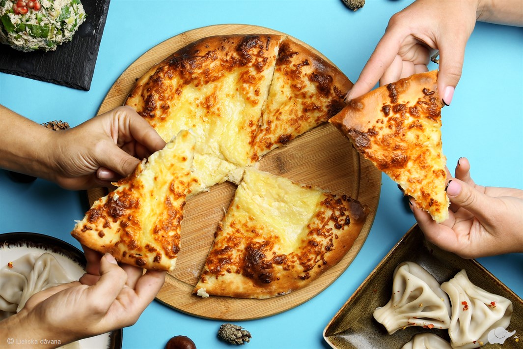 Hačapuri un hinkali šeit top no paštaisītas mīklas, svaigi cepti vai vārīti pēc paaudzēs nodotām receptēm, un pat slavenais Imeruli siers tiek gatavots tepat – “Hačapuri” komandas rokās. Te ar ēdienu nejoko – viss ir pa īstam, garšīgi un no sirds!