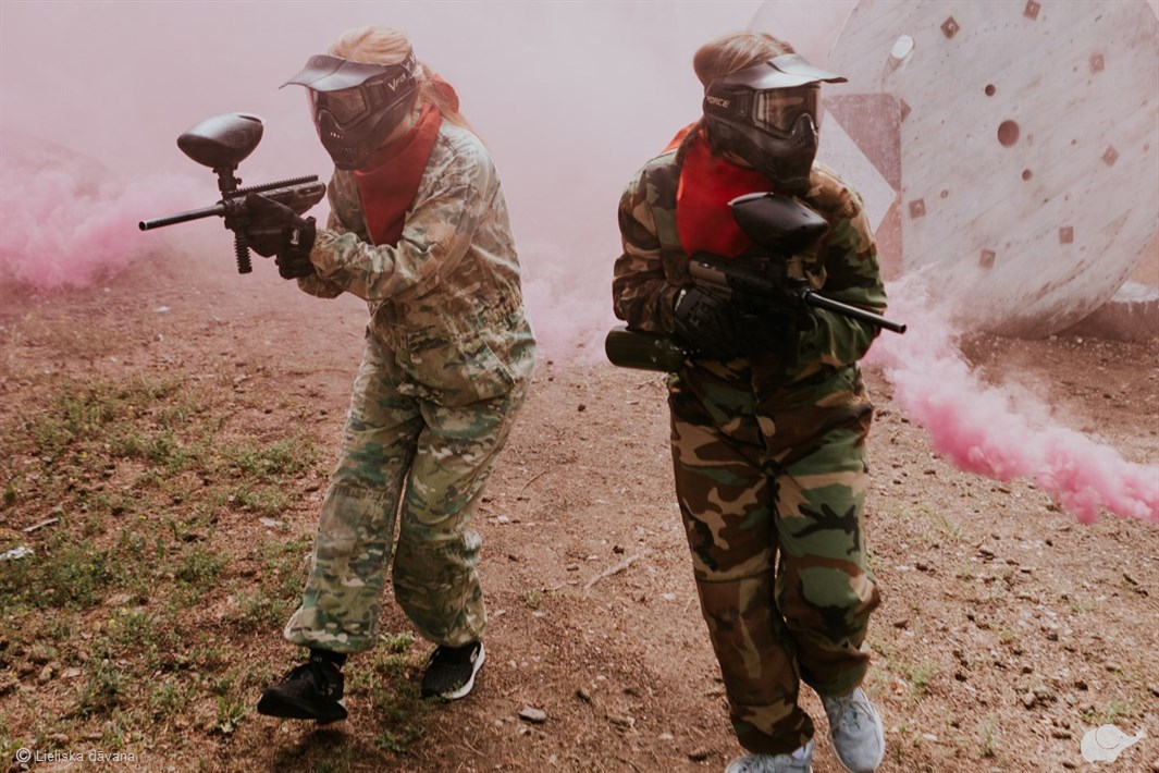 Piedāvājumā iekļauts: spēle (30 min), 150 bumbiņas katram, maska, ierocis, instruktors, laukumi.