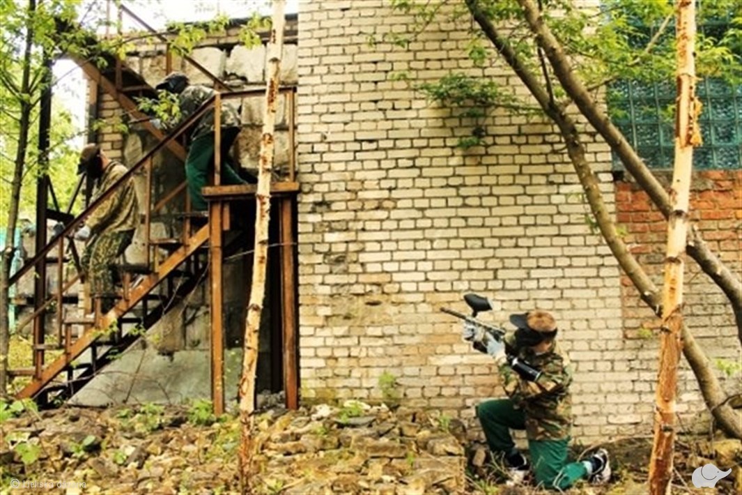 Piedāvājumā iekļauts: spēle (30 min), 100 bumbiņas katram dalībniekam, maska, ierocis, instruktors, laukumi.