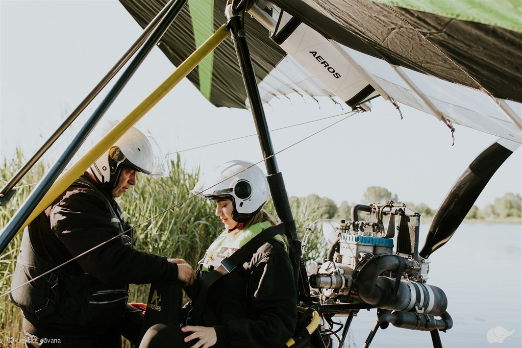 Motodeltaplāns apvieno planiera vieglumu ar motora jaudu, ļaujot izbaudīt īpašu brīvības sajūtu lidojumā. Atvērtā kabīne paver iespaidīgu panorāmu no putna lidojuma, dāvinot ne tikai elpu aizraujošus skatus, bet arī spilgtas emocijas un jaunu skatījumu uz pilsētu! Izmēģiniet paši vai pārsteidziet kādu ar šo unikālo piedzīvojumu! Lai pilnībā baudītu mirkli un vēlāk atcerētos spilgtās emocijas, lidojuma laikā tiks uzņemti foto un video.