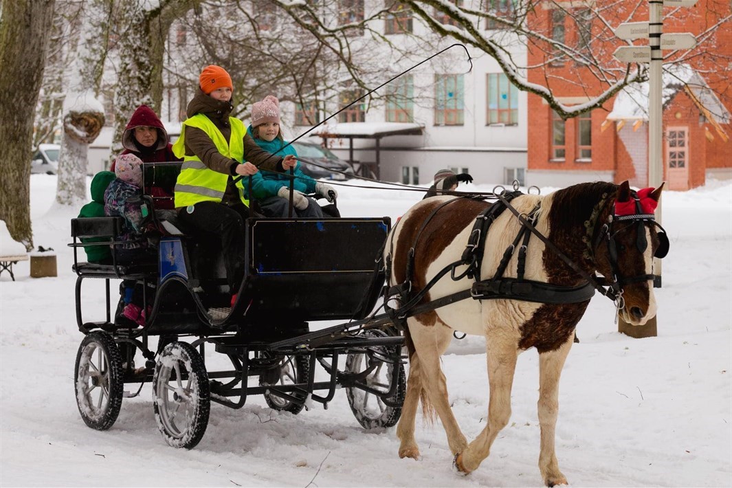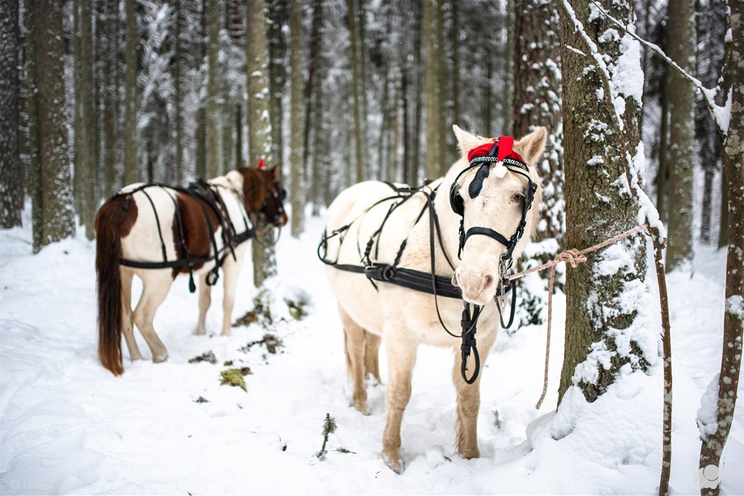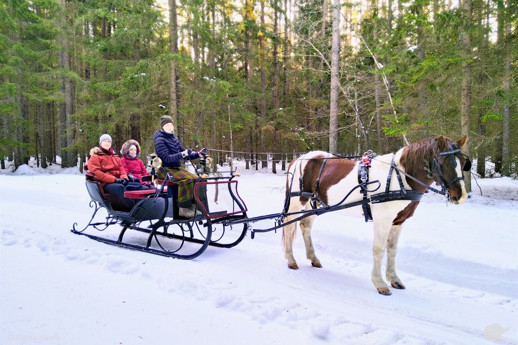 Zvaniņu skaņām šķindot, Jūs varēsiet baudīt braucienu ērtos ratos vai kamanās, kurās būs iejūgts skaists, balts igauņu zirgs ar zilām acīm. Brauciena laikā Jums būs iespēja nogaršot vietējo zāļu tēju. Ja vēlēsieties, varēsiet piestāt un iekurt nelielu ugunskuru kādā no tam paredzētajām vietām.
