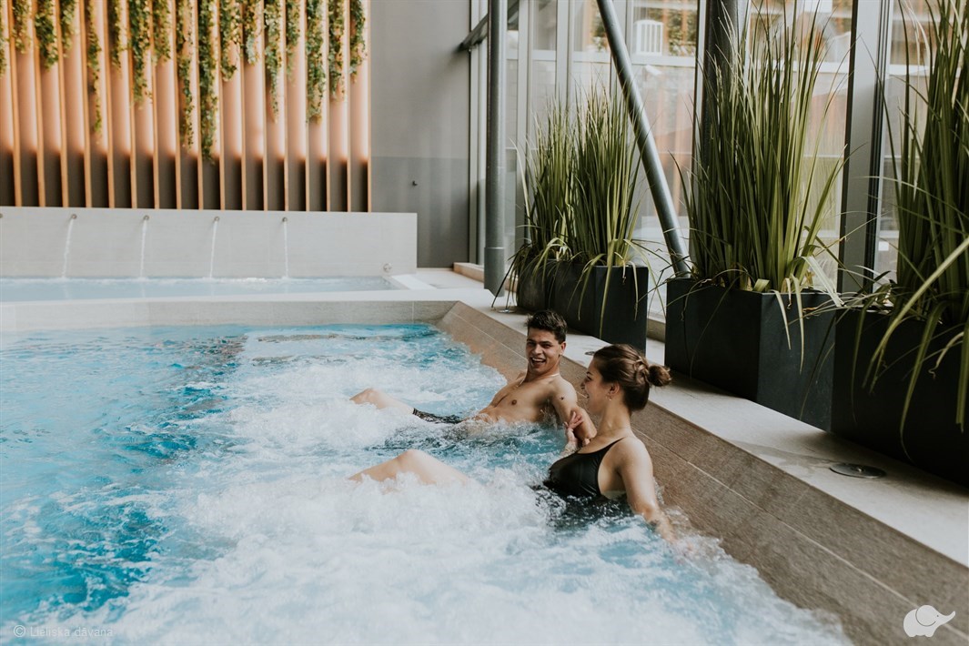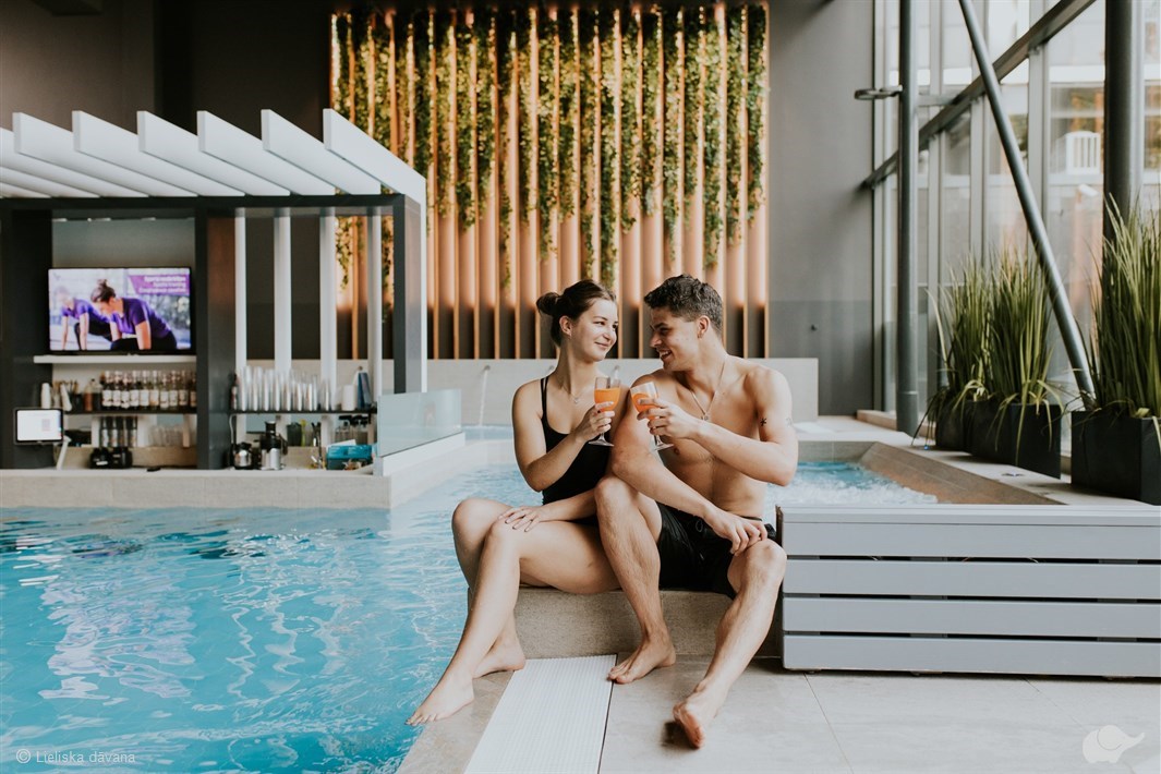 Peldieties baseinos un atlaidieties burbuļvannās, pakarsējieties pirtīs, ļaujoties īpašām sarunām vai tvaika jutekliskajam reibumam, pasūtiet gardu kokteili un izbaudiet viens otra sabiedrību. Jūsu īpašajam SPA randiņam šeit pieejami četri dažādu temperatūru baseini, burbuļvannas, ūdens bārs, kaskādes, kontrastduša un sešas dažādas pirtis, tai skaitā romiešu pirts, sauna, aroma un sāls istaba.