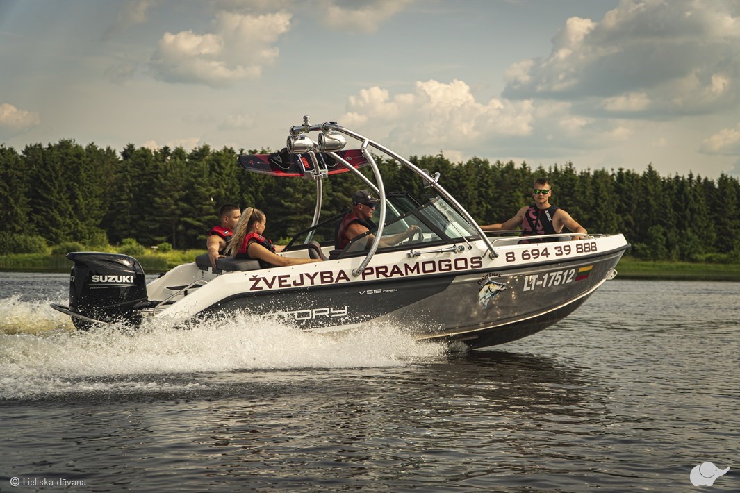 Jums būs iespēja doties izbraucienā pa Kupišķu lagūnu ar jauno, jaudīgo „Victory 515” kuteri, kurš spēj gandrīz vai lidot.