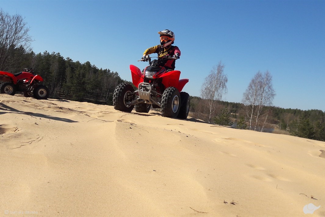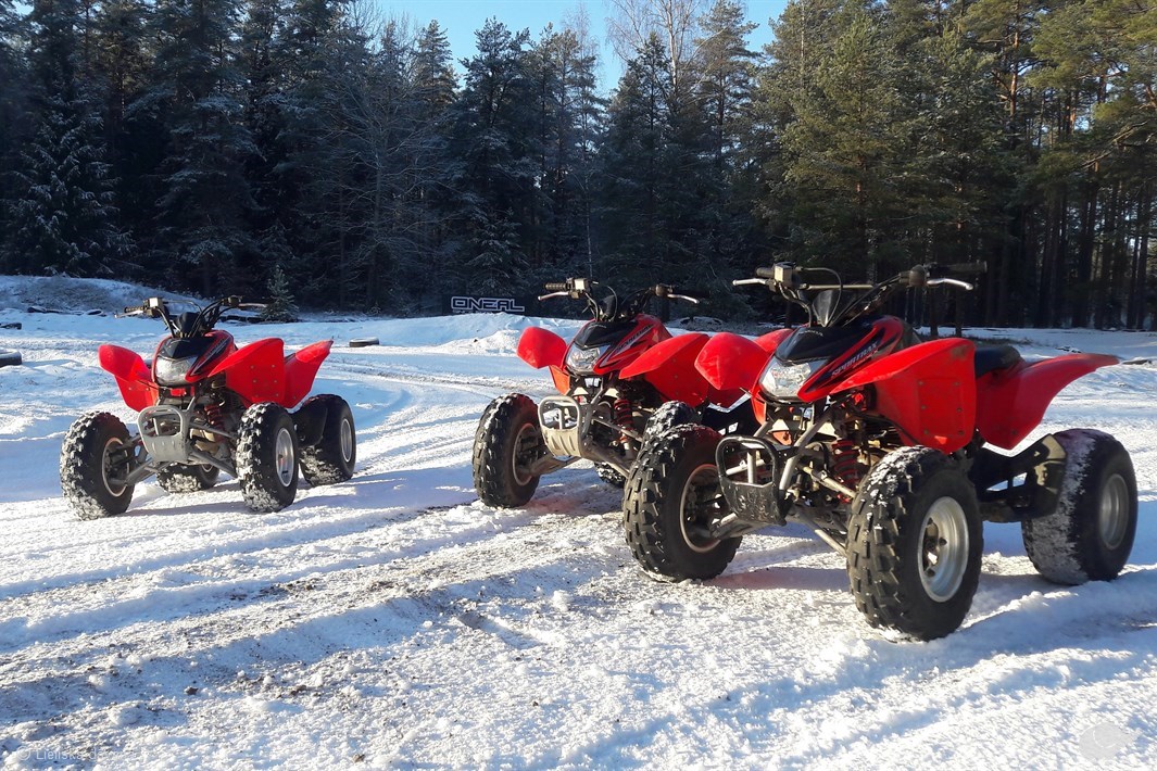 Piedāvājam doties aizraujošā izbraucienā ar kvadracikliem pa mežu, profesionāla instruktora pavadībā. Piedzīvojumā jūs dosieties ar diviem vienvietīgiem kvadracikliem - Honda TRX 250X modeļiem. Tie aprīkoti ar manuālo 5 pakāpju ātrumkārbu un pusautomātisko sajūgu. Pirms došanās jums tiks sniegta nepieciešamā instruktāža un izsniegts ekipējums - zābaki, ķivere, brilles, cimdi un spec. apģērbs. Maršruts un intensitāte tiks individuāli pielāgota braucēju prasmēm un iemaņām. Adrenalīns un spilgtas emocijas jūs jau gaida!