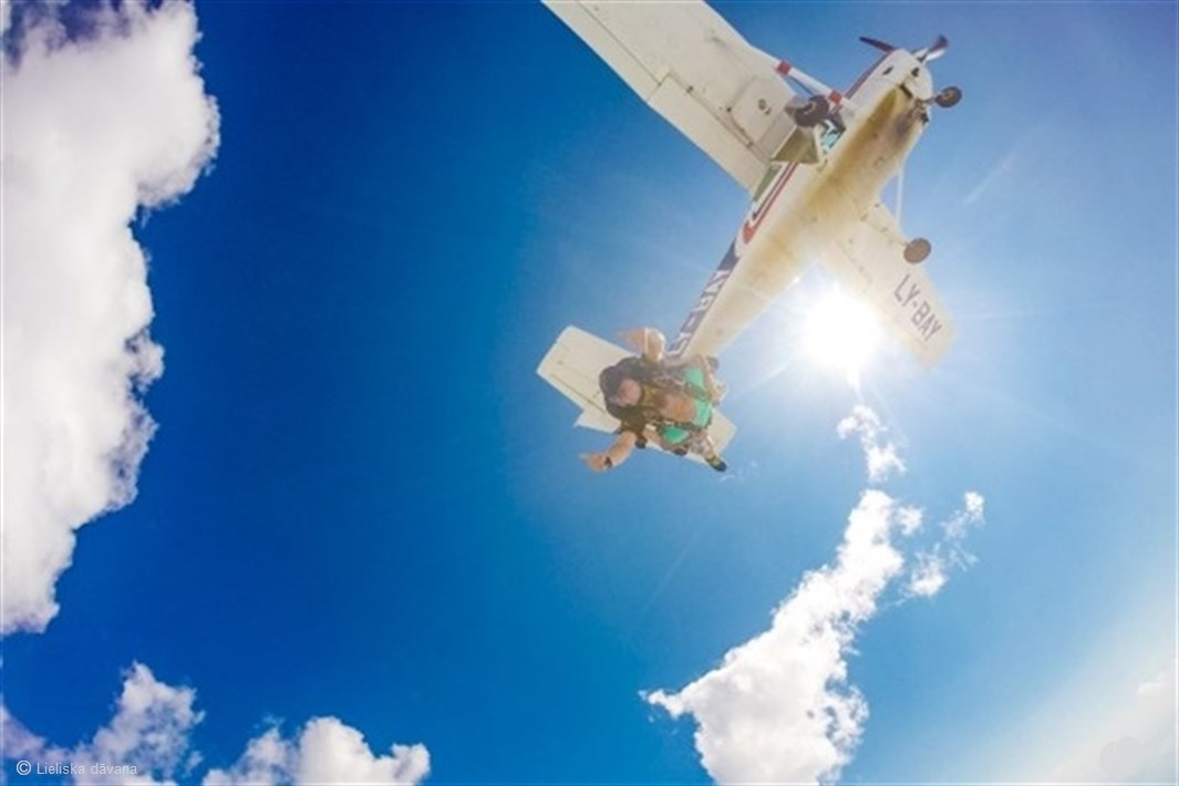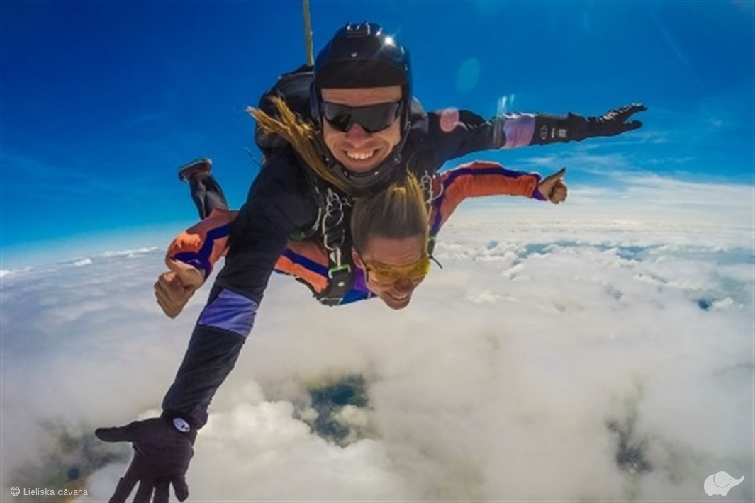 Tā ir iespēja izjust brīvo kritienu un apbrīnot jūras piekrastes skatus sava pirmā lēciena laikā! Tandēma lēciens – viens no iespaidīgākajiem lēcieniem, kas neprasa ilgu sagatavošanos. Kopā ar pieredzējušu instruktoru dāvanas saņēmējs izlēks no 3000 m augstuma un piedzīvos apmēram 30 sekundes brīvā kritiena! Kad instruktors atvērs izpletni, lidojums gaisā turpināsies aptuveni 5 minūtes, līdz sasniegsiet zemi.