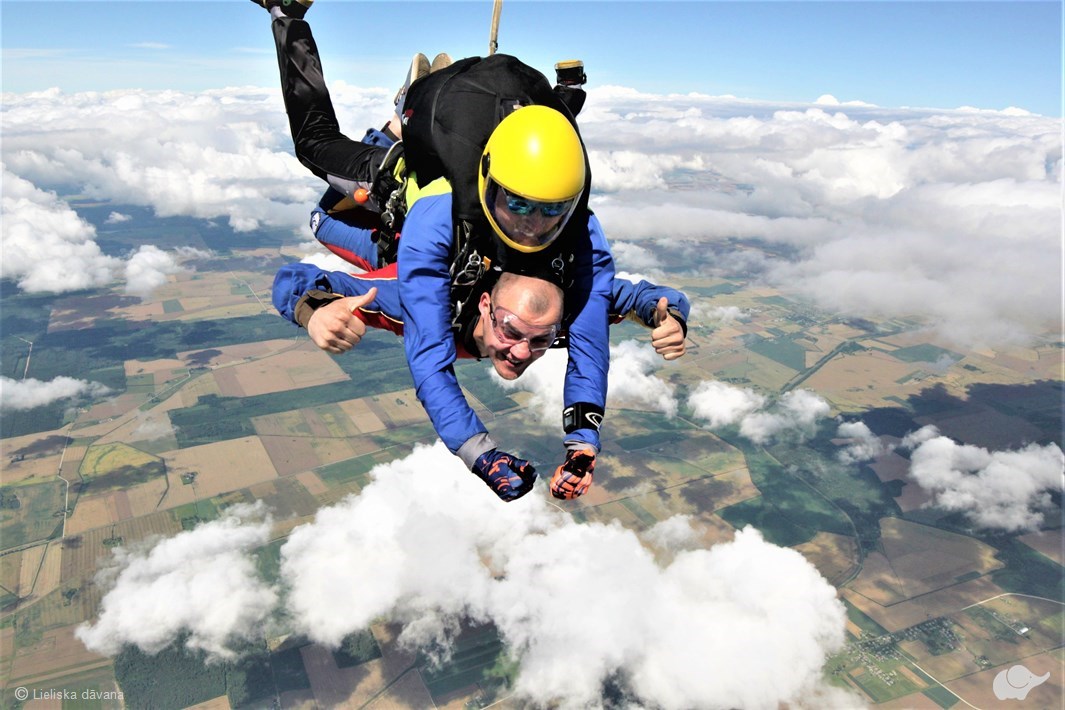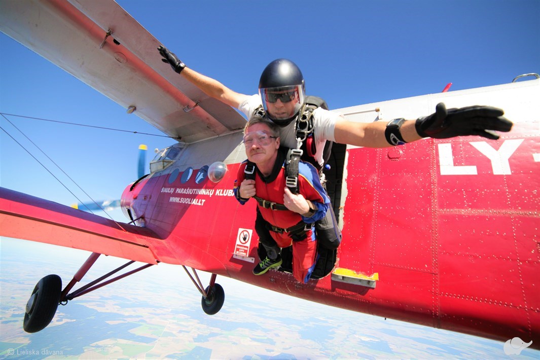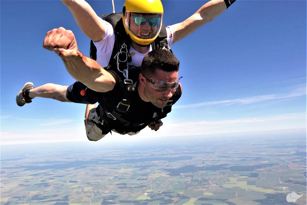 Tandēma lēciens ar instruktoru – vienkāršākais un drošākais veids, kā veikt savu pirmo izpletņa lēcienu un izbaudīt brīvā kritiena sajūtu! Lēcienam tiek izmantots divvietīgs spārna tipa izpletnis, kas paredzēts instruktoram un pasažierim, kuri savienoti ar speciālu drošības jostu sistēmu. Tā kā lēciens notiek kopā ar instruktoru, sagatavošanās aizņem tikai aptuveni 20 minūtes. Šajā laikā tiek mācīts, kā pareizi izlekt no lidmašīnas, kā uzvesties brīvā kritiena laikā un kā droši nolaisties. No brīža, kad iekāpsiet lidmašīnā, līdz pat drošai nosēšanai uz zemes par Jums rūpēsies pieredzējis instruktors.