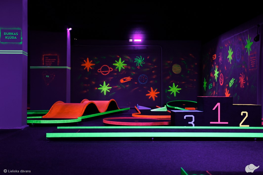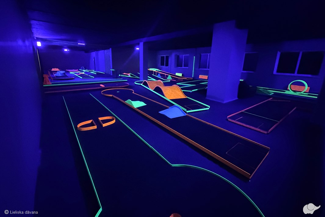 Šī ir iespēja bērniem aktīvi pavadīt laiku draudzīgā un drošā vidē, spēlējot minigolfu tumsā ar spilgtiem fluorescējošiem elementiem. Spēle nav sacensības, bet gan jautrs veids, kā attīstīt kustību koordināciju, pacietību un precizitāti. Katrs var spēlēt savā ritmā – bez steigas un laika ierobežojuma!