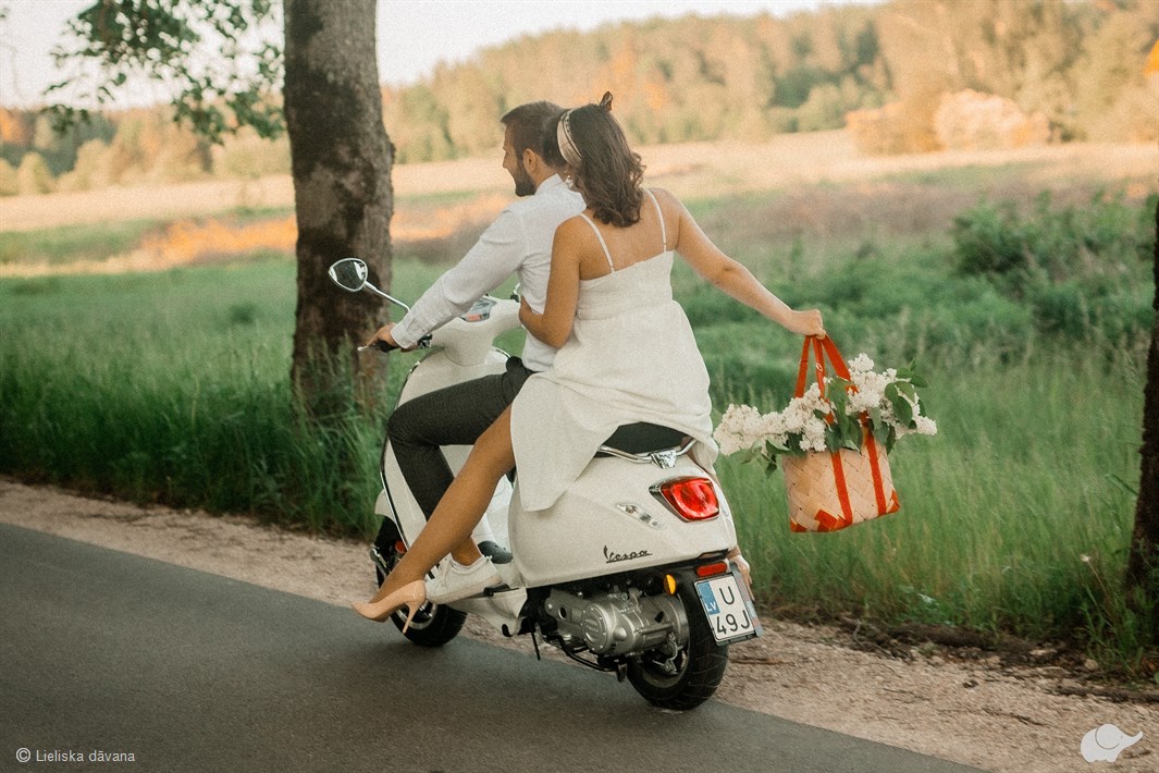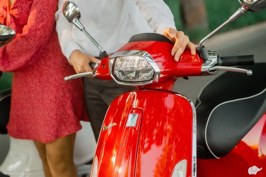 Vespa ikoniskie motorolleri Jūs ne vien aizvedīs neaizmirstamā piedzīvojumā, bet arī brīnišķīgi iederas kāzu, bildinājumu, romantiskās pāru vai citās oriģinālās un stilīgās fotosesijās. Varbūt vēlaties izmēģināt atdarināt kadrus no ikoniskās filmas “Romas brīvdienas”? Lieliska dāvana dzimšanas dienā vai kāzās, kas vienlaikus būs romantisks pārsteigums.