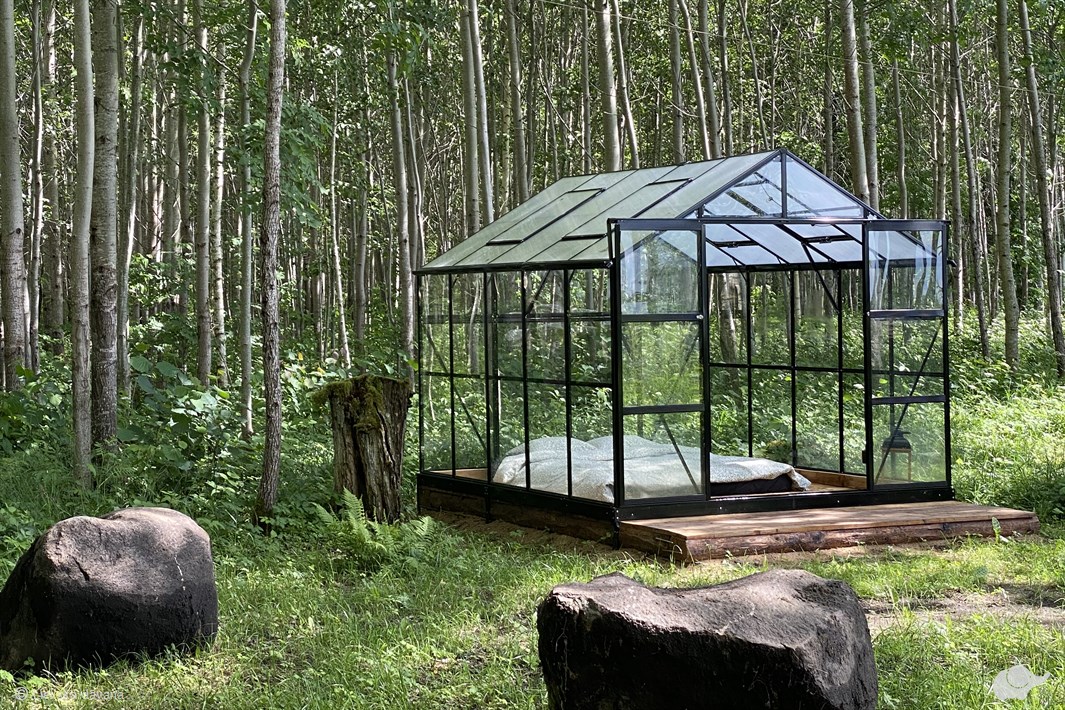 Ja vēlēsieties, nakšņošanas pieredzi iespējams papildināt ar sildīšanos kublā netālu līdzās stikla namiņam (nepieciešams atsevišķi vienoties ar pakalpojuma sniedzēju, veicot rezervāciju).