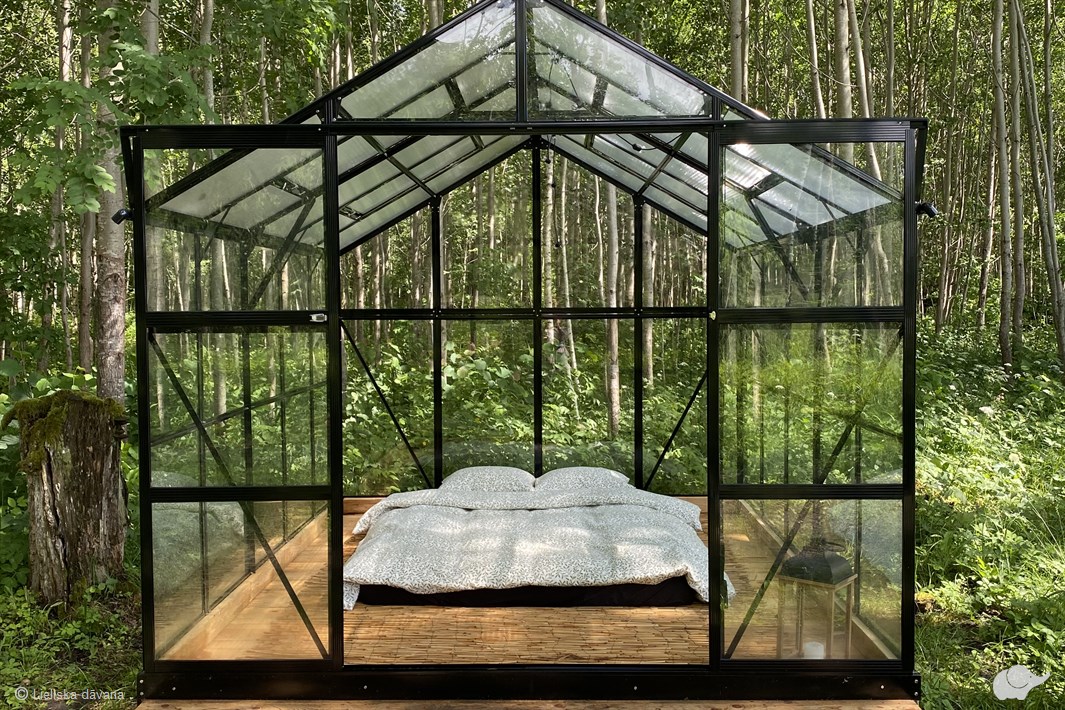 Uz stikla namiņu jūs vedīs dižozolu meža taka, kur apkārt ir tikai mežs, dabas smaržas, skaņas un dižakmeņu varenums. Tā būs iespēja pamosties putnu dziesmās, vērot koku galotnes un sajust meža mieru, baudot vienam otra sabiedrību. Neaizmirstamas atmiņas, ko dāvināt otram!