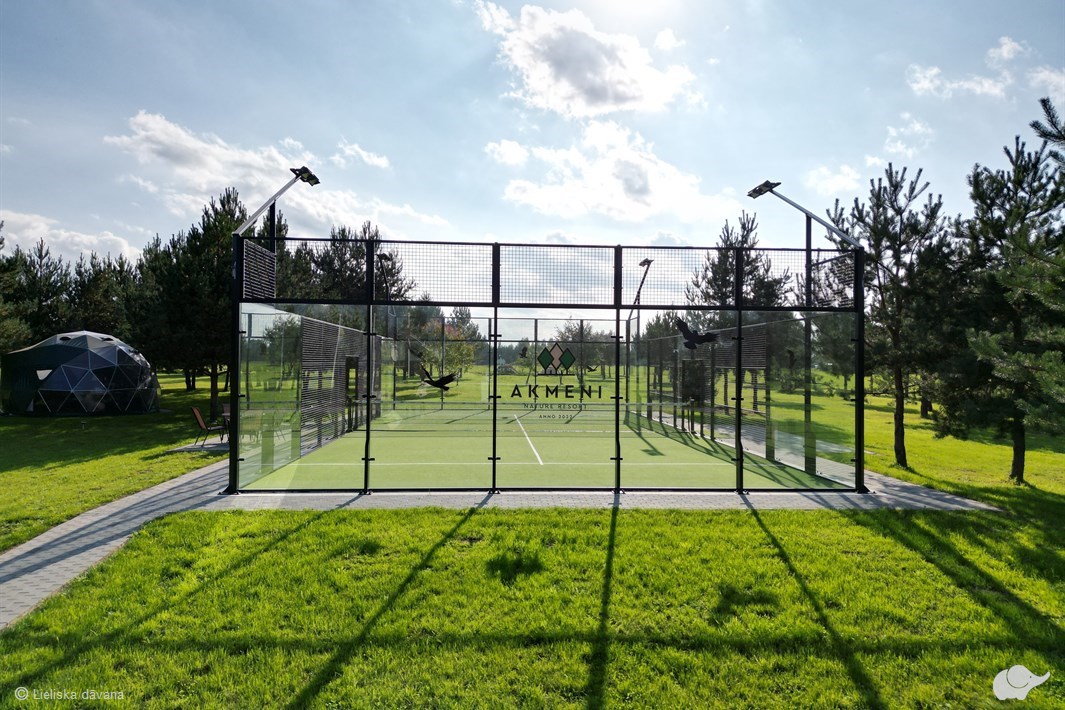 Dāviniet enerģisku piedzīvojumu ar „padel” tenisa spēli skaistajā „Akmeni Nature Resort” kūrortā! Ļaujiet draugiem, kolēģiem vai tuviniekiem izbaudīt šo dinamisko un aizraujošo spēli, kas ir piemērota jebkura vecuma un prasmju līmeņa spēlētājiem. „Padel” tenisa spēle paredz vieglākas bumbiņas un mazāku kortu, kas padara spēli pieejamāku. „Akmeni Nature Resort” korti ir teicami uzturēti un gaida spēlētājus doties uz enerģiskām cīņām.