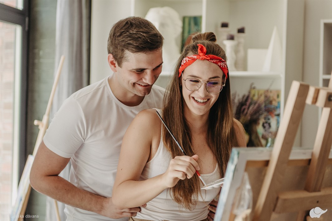 Gleznošana – pat ja uz audekla to mēģināsiet pirmo reizi – ir brīnišķīga iespēja ļauties mākslas meditācijai. Tā iegremdē sevī un atklāj īpašas lietas par otru cilvēku Jums līdzās. Trīs stundās Jūs svinēsiet radošumu un, pieredzējušu pasniedzēju atbalstīti, radīsiet unikālu gleznu – skaistu piemiņu no kopīgā piedzīvojuma! Piemērota gan iesācējiem, kas vēlas iemācīties gleznot, gan tiem, kas meklē iespēju atslābināties radošā atmosfērā un alternatīvu ierastajiem randiņiem.