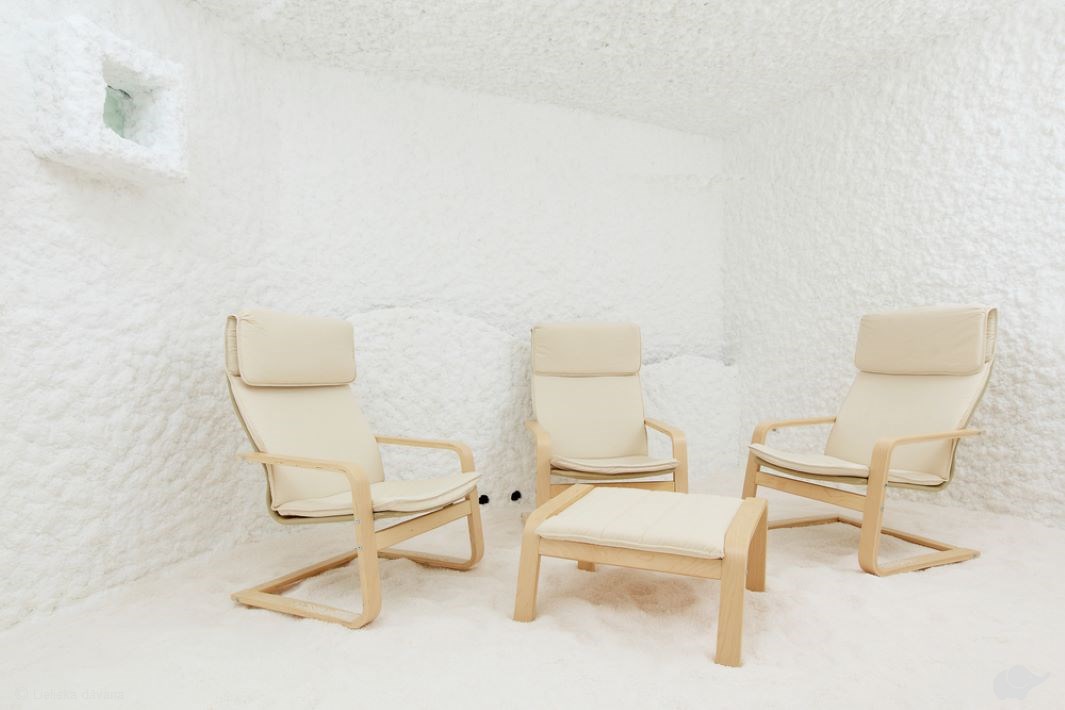 Sāls istabas apmeklējuma laikā Jūs ieelposiet sāls mikrodaļiņas, kas attīra elpceļus, uzlabo elpošanu un sniedz organisma vispārēju tonizējošu efektu. Šī terapija ir īpaši ieteicama cilvēkiem, kas vēlas mazināt nogurumu un atjaunot enerģiju, kā arī gūt mieru no ikdienas steigas. Jums būs iespēja atpūsties uz telpā izvietotas saliekamās gultas, klausīties pieklusinātu mūziku, bet Jūsu mazuļi varēs spēlēties sāls smilšu kastē.