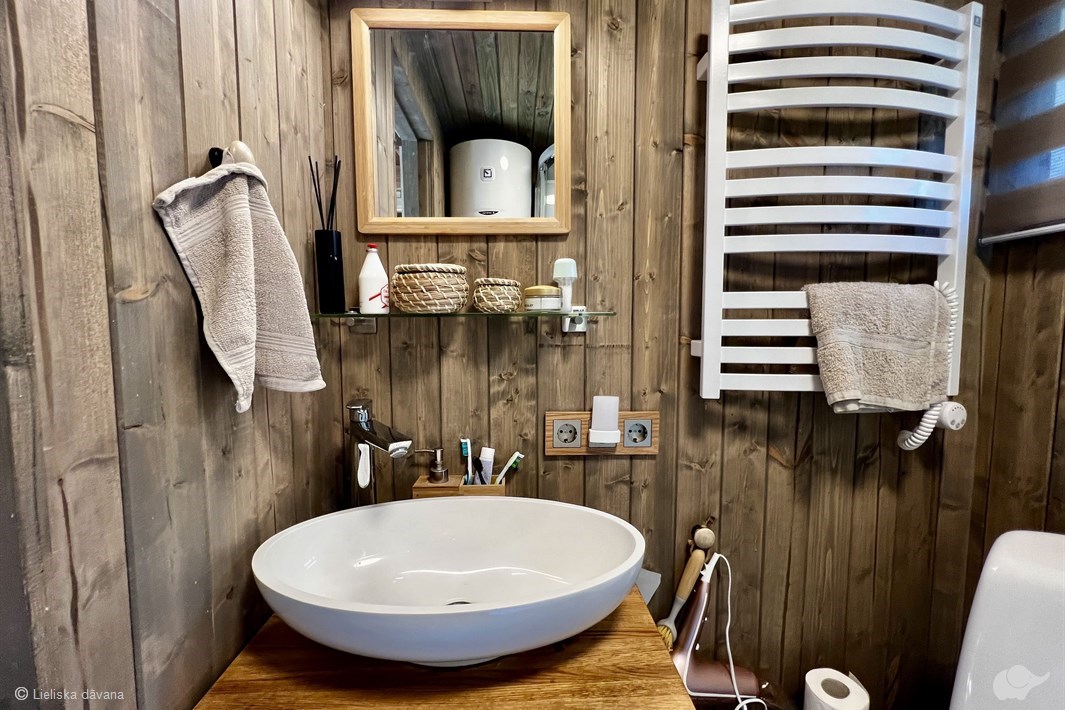 Ļaujieties sapņiem un divvientulībai patīkamos atpūtas brīžos! Skaista apkārtne, pilnībā labiekārtota un līdz sīkumam pārdomāta māja, relaksējoša pirtiņa, kubls un virs tā – zvaigžņotās debesis – viss, kas nepieciešams fantastiskai atpūtai tikai pusstundas brauciena attālumā no Rīgas. Jūs sagaidīs šampanietis un nelielas uzkodas. Ja esat aktīva dzīvesveida cienītāji, tad pēc relaksējoša kubla un pirts varēsiet uzspēlēt badmintonu vai galda tenisu. Vakara stundas pavadiet siltās un omulīgās telpās vai arī uz terases – vasaras laikā. Lielais Smart TV piedāvās „Netflix”, „Amazon” un citas aplikācijas ar neierobežotu filmu un seriālu klāstu, bet video spēļu cienītājiem ir pieejama „XBOX Series S” iekārta.