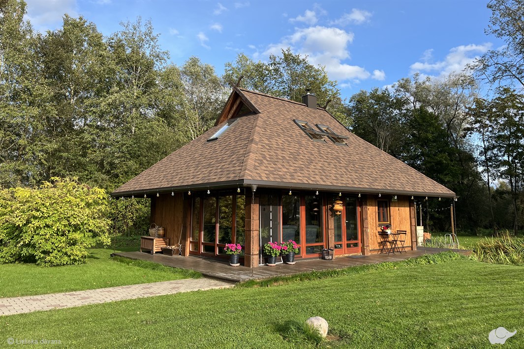 Romantiska atpūta – nakts mājīgā namiņā "UpeNes" ar kamīnu, pirti un kublu zem klajas debess un izbraucienu ar laivu.