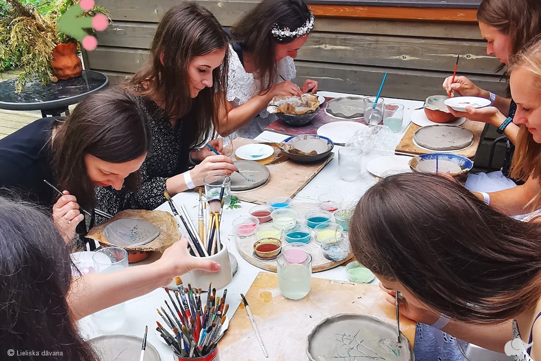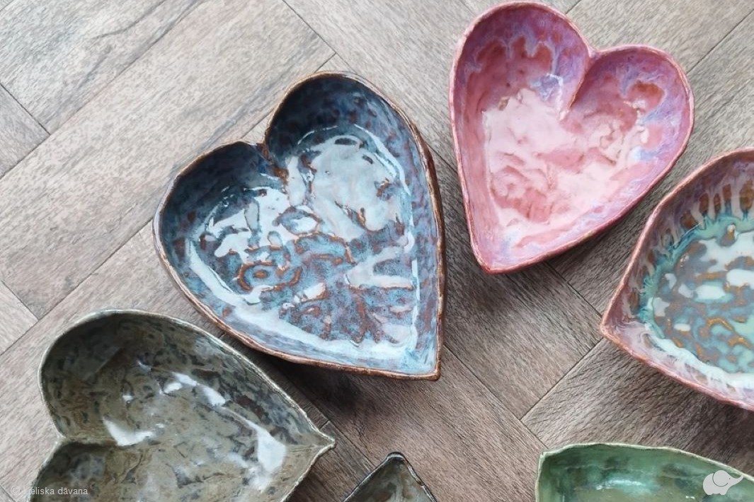 Meistarklases laikā Jūs apgūsiet māla rullēšanu un sirsniņu formas veidošanu. Jums būs iespēja izgatavot 3 keramikas šķīvju komplektu, nokrāsot tos un pēc apdedzināšanas un glazēšanas 10 dienu laikā trauki būs gatavi lietošanai – interjera papildināšanai vai dāvināšanai īpašiem cilvēkiem.