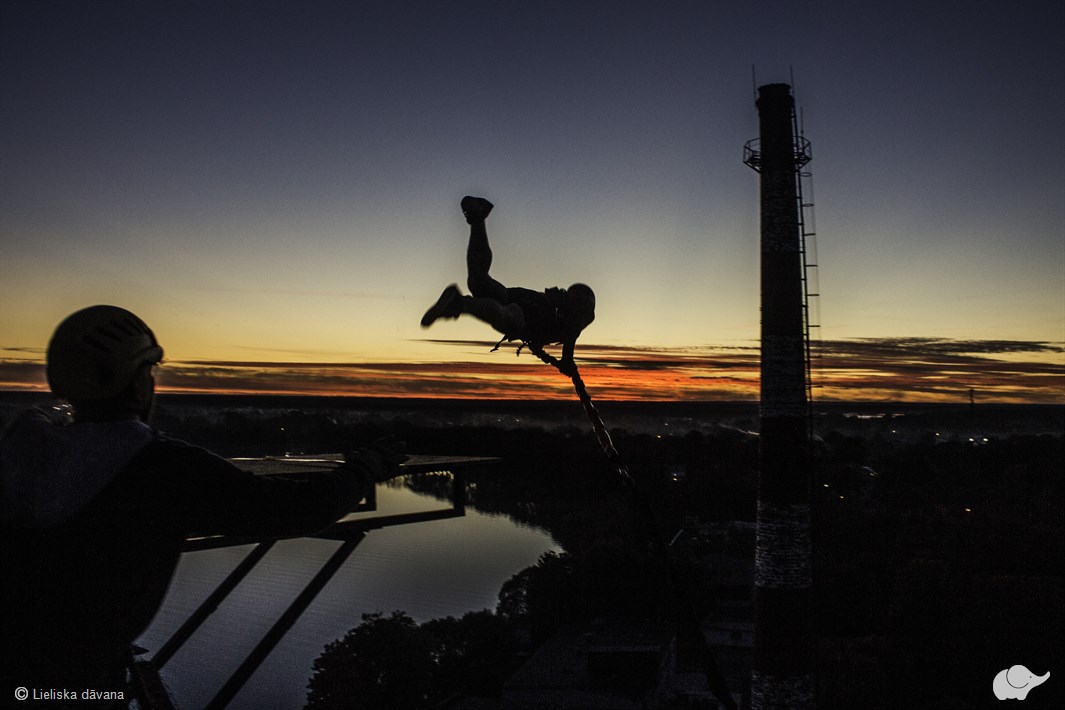 Pieņemiet “Ropejumping” izaicinājumu! Individuāls lēciens ar virvi no Slokas papīrfabrikas torņa platformas 47 m augstumā būs īpaša pieredze gan drosmīgiem adrenalīna meklētājiem, gan lieliska dāvana ikvienam fiziski un emocionāli spēcīgam cilvēkam. To iepriekš pat ir apliecinājušas dāmas gan 4, gan 68 gadu vecumā!