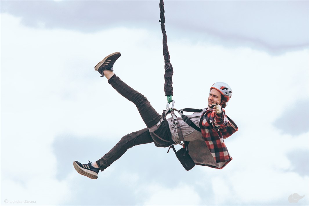 Nākamais mirklis – drosmīgs solis pretī brīvajam kritienam! Zibenīgs paātrinājums un spēcīgs adrenalīna emociju vilnis dāvās kaifīgu brīvības sajūtu – prāts apklusīs, ķermenis pārņems vadību un sirds pulsēs, bet sajūtās valdīs neaprakstāms vieglums! Jūs jau nojaušat, šīs emocijas, nevar izstāstīt – tās jāizdzīvo, jādāvina kā izaicinājums sev un īpašiem cilvēkiem!
