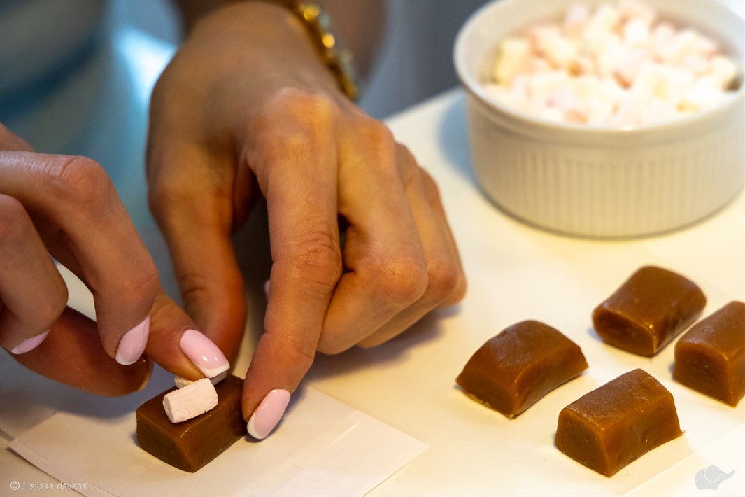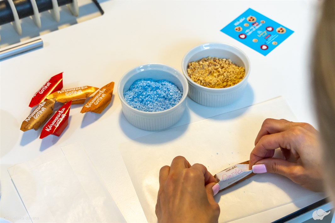 Nesteidzīgā procesā dāvanas saņēmējs varēs līdzdarboties iemīļotās “Skrīveru Gotiņas” ietīšanā, kā arī radīt debešķīgi gardus našķīšus no saldā marcipāna un īrisa.