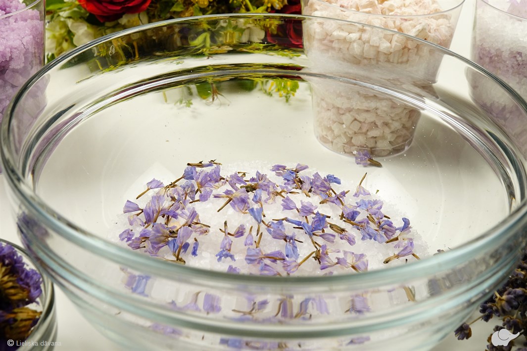 Meistarklases laikā katrs dalībnieks varēs izgatavot savu īpašo vannas sāļu maisījumu (250 g), izmantojot sev tīkamākos materiālus. Pieejamas vairāk kā 20 dažādas izejvielas (ēteriskās eļļas, sausie ziedi, bāzes eļļas, sāls), lai Jūs varētu izgatavot vannas sāli, kas atbilstu tieši Jūsu vēlmēm.