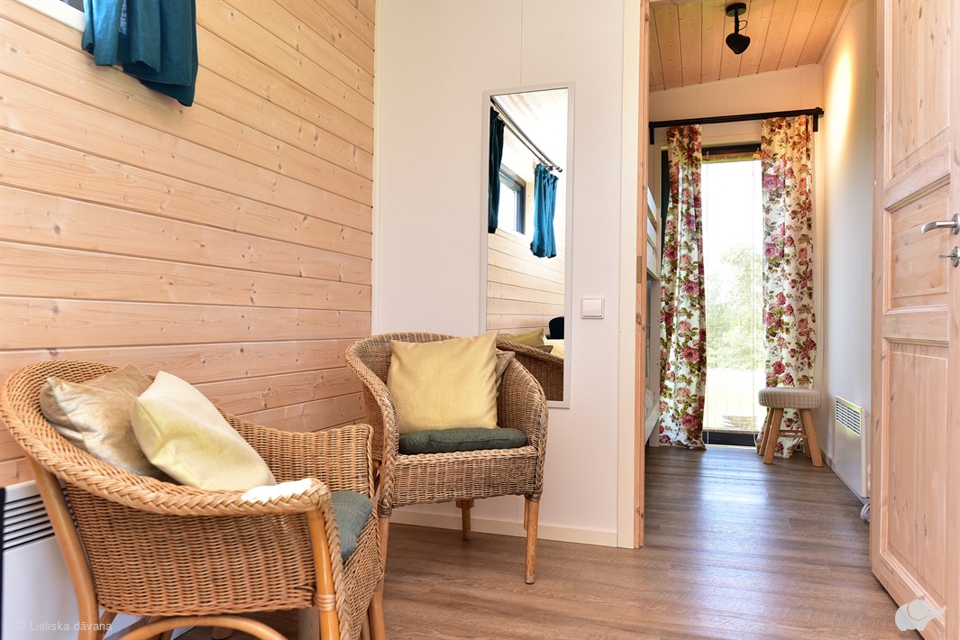 Privātajā Skandināvu stila atpūtas namiņā ir divas guļamistabas: viena ar divvietīgu gultu un otra ar divstāvu gultu diviem cilvēkiem. Viesistaba ir apvienota ar virtuvi, ir privāta vannas istaba ar dušu. Namiņam ir plaša terase, kas ļauj vakaros baudīt skatu uz ezeru. Atpūtas oāzē “PALAIMA” relaksēšanās ir paredzēta bez maziem bērniem, dodot iespēju ikvienam atpūsties no ikdienas steigas.
