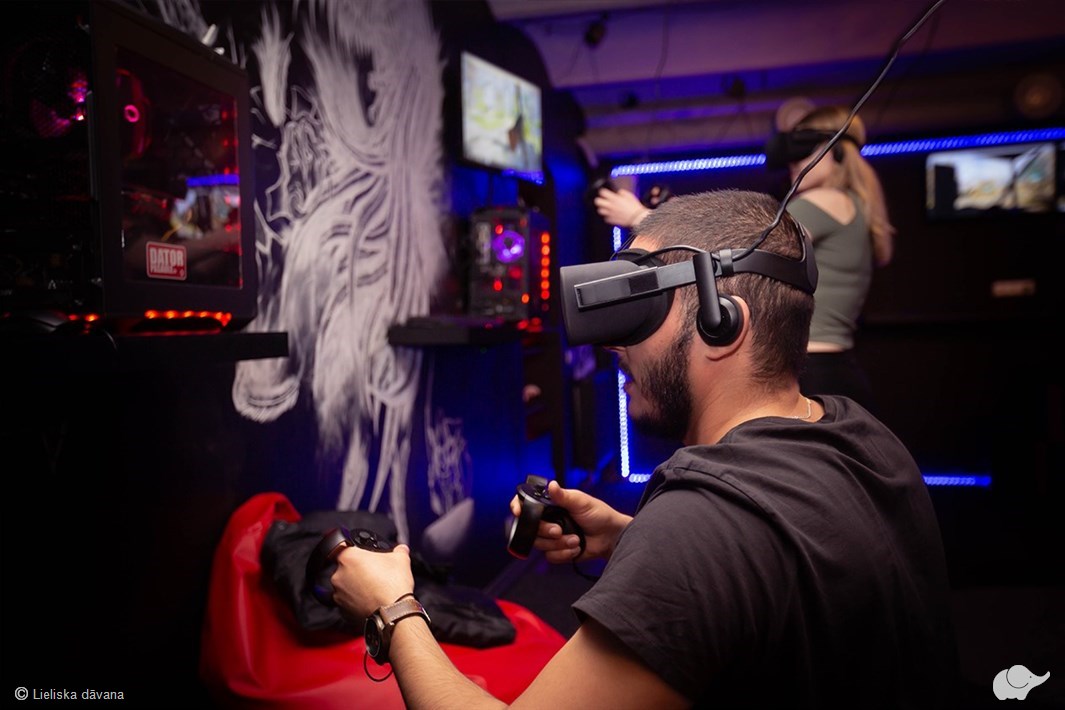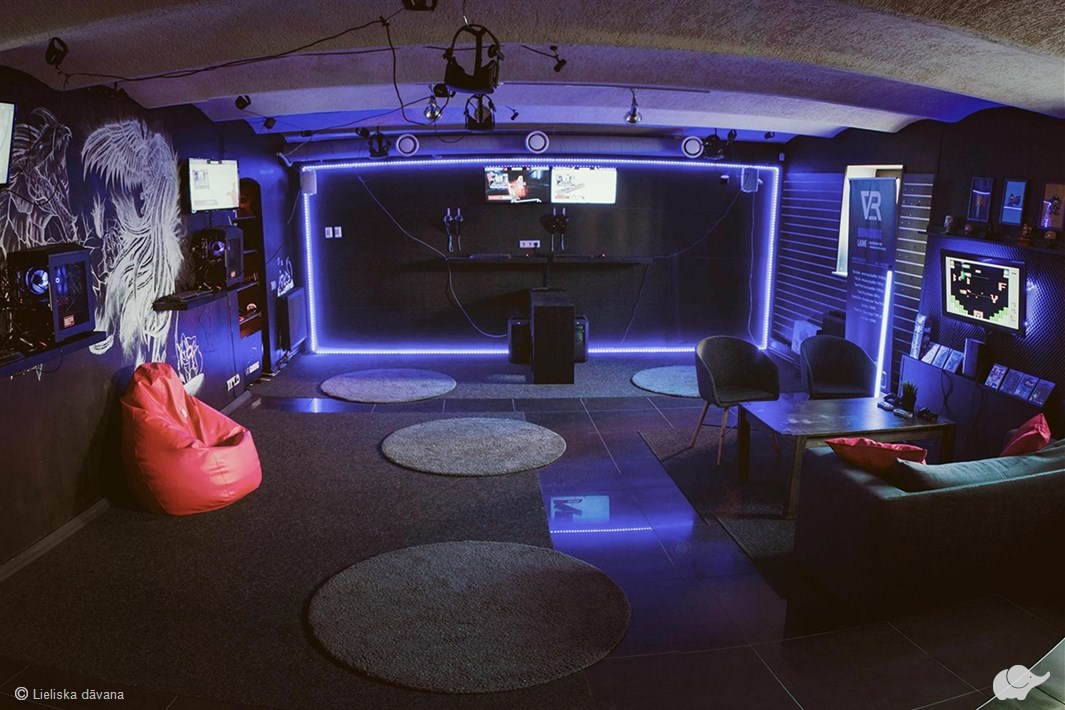 Jums ir lieliska iespēja izbaudīt virtuālās realitātes telpu, kas ir aprīkota ar modernākajām VR tehnoloģijām. Studijā ir pieejamas sešas virtuālās realitātes stacijas, divi autosacīkšu simulatori, retro gaming konsoles, xbox konsoles ar kinect sensoru un standarta galda spēles. Papildus tam, studijas apmeklētājiem ir iespēja izbaudīt alkoholiskos un bezalkaholiskos dzērienus no bāra.