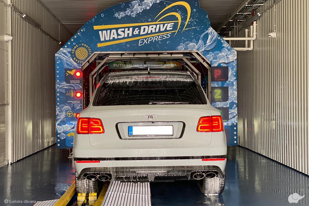 “Wash & Drive Express” automatizētajā mazgāšanas līnijā Rīgā iespējams iegūt mirdzoši tīru auto 3 minūšu laikā. Mazgāšanas laikā vadītājs un pasažieri var baudīt gaismas un putu šovu, pēc tam – iztīrīt salonu jaudīgā putekļsūcēju zonā.