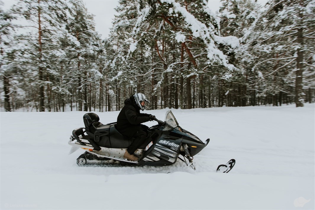 Brauciens notiks ar vienu sniega motociklu. Brauciens ar sniega motociklu iespējams no 18 gadu vecuma.